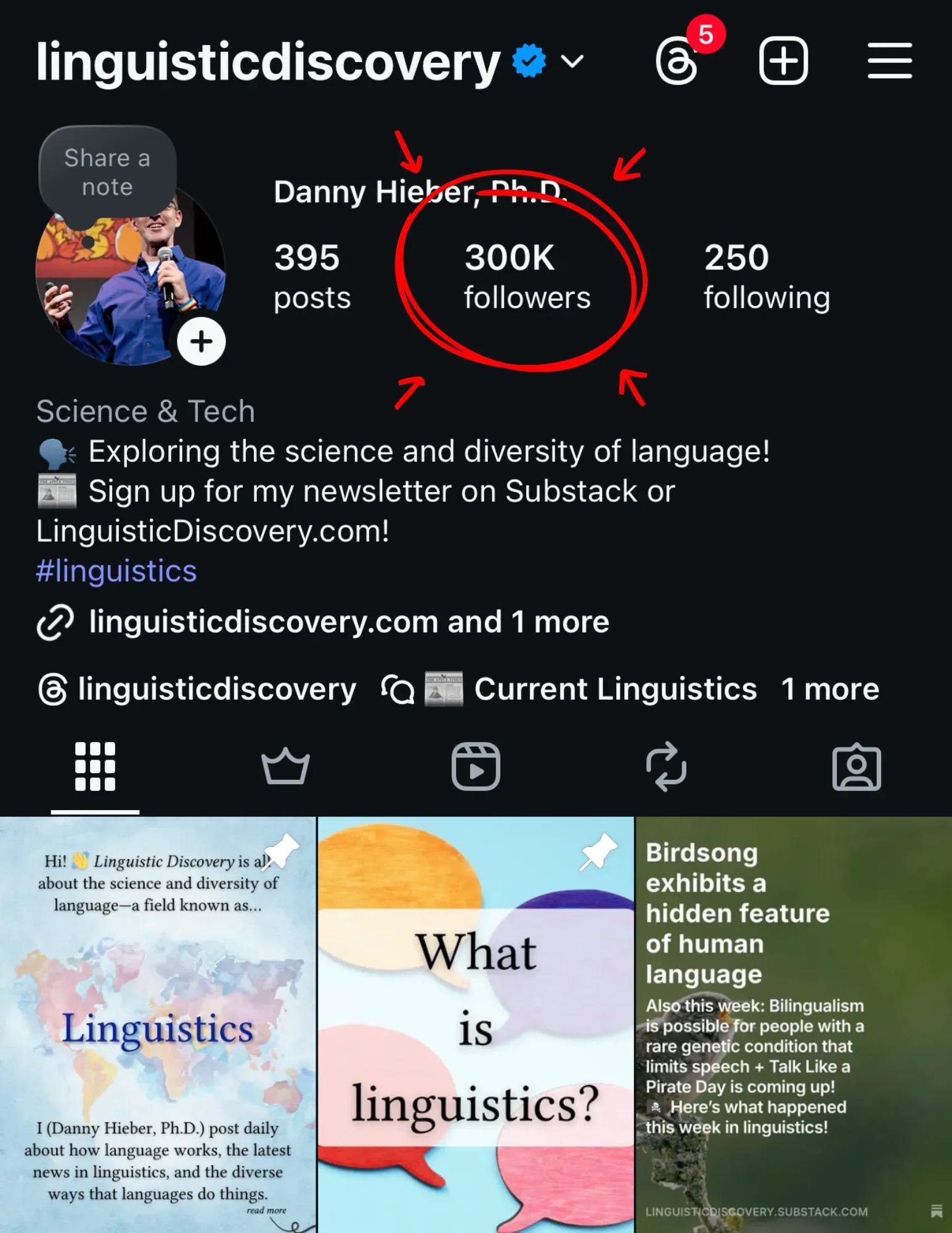 Linguistic Discovery’s Instagram account just reached 300,000 followers! Thank you so much to those of you who follow me there and are helping support my mission to educate the world about the science and diversity of language. You’re such a great community!