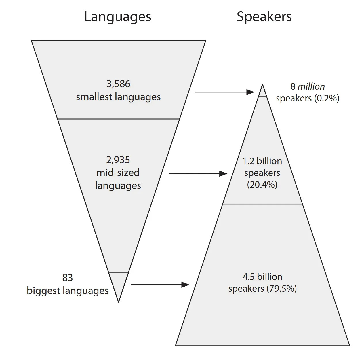 The existence of megalanguages like English and Mandarin have skewed our idea of what counts as a “small” language. For the vast majority of human history, any given language only had anywhere from several hundred to several thousand speakers.