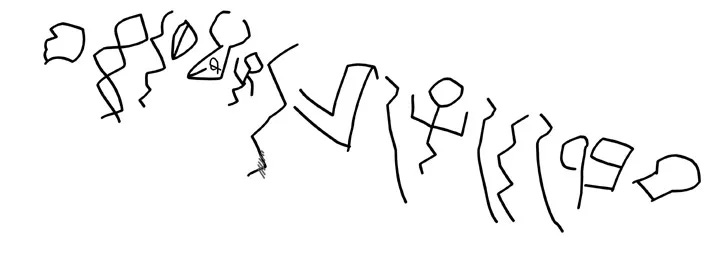 Compared with the complexities of hieroglyphs, the principle behind the man’s system is simple: every image looks like a thing, and it stands for the first sound of the word for that thing in his language. For example, he carves an ox’s head, with eyes and horns, facing to the left:
